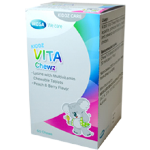 KIDDZ Vita Chewz is a chewable multivitamin formula fortified with Lysine specifically formulated to stimulate appetite, promote healthy growth, and prevent vitamin deficiencies in children. Lysine is one of the amino acids that the body needs for growth and tissue repair.