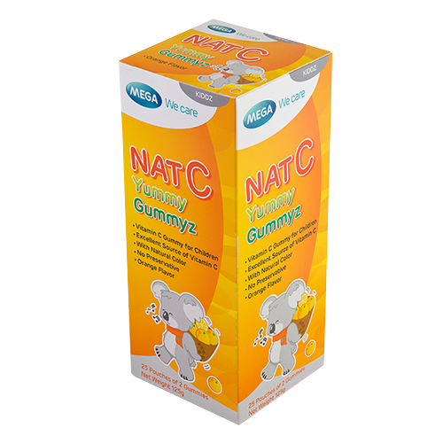 Nat C Yummy Gummyz is a vitamin C in gummy form for kids to help support immunity. Nat C Yummy Gummyz is beneficial for especially to prevent children from catching common cold. It is also essential for collagen production which is important for healthy connective tissue (including skin, tendons and teeth). It tastes unbelievely gummie-tastic, bursting with delicious organge flavor.