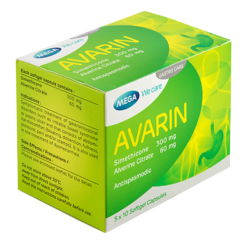 For symptomatic treatment of gastrointestinal disorders such as irritable bowel syndrome or peptic ulcer and that consists of abdominal discomfort (bloating, distention, fullness, pressure, pain and/or cramps). It is also used in the treatment of dysmenorrhea.